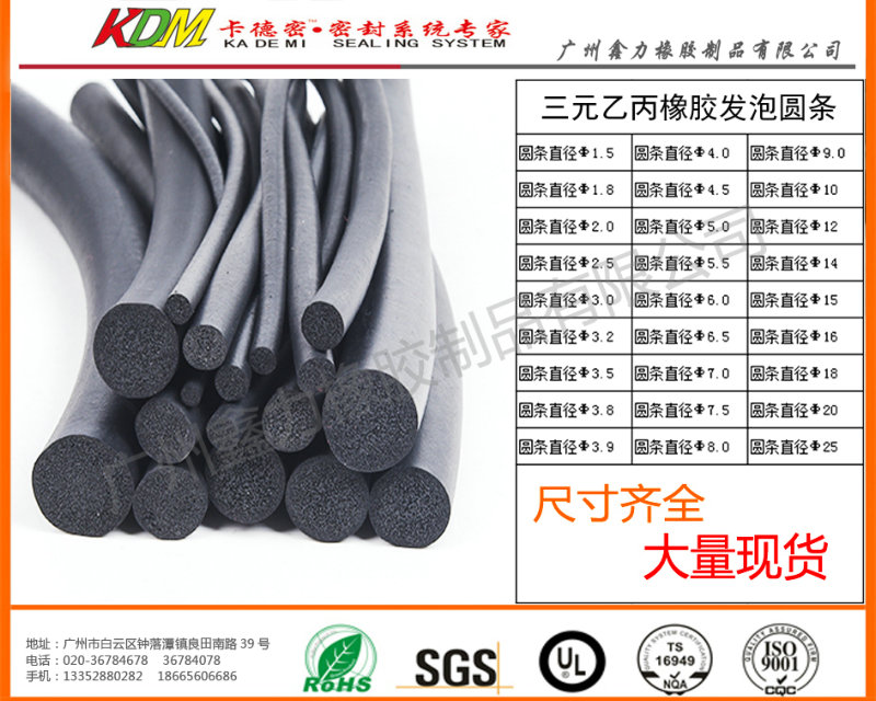 1. 常用材料是三元乙丙橡膠、發(fā)泡圓條、海綿圓條、海綿膠繩、采用擠出微波硫化等發(fā)泡工藝擠出成型,表面光潔美觀,具有良好的彈性和抗壓縮變形。